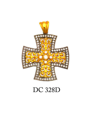 Byzantine cross pendant with diamonds-14K solid gold