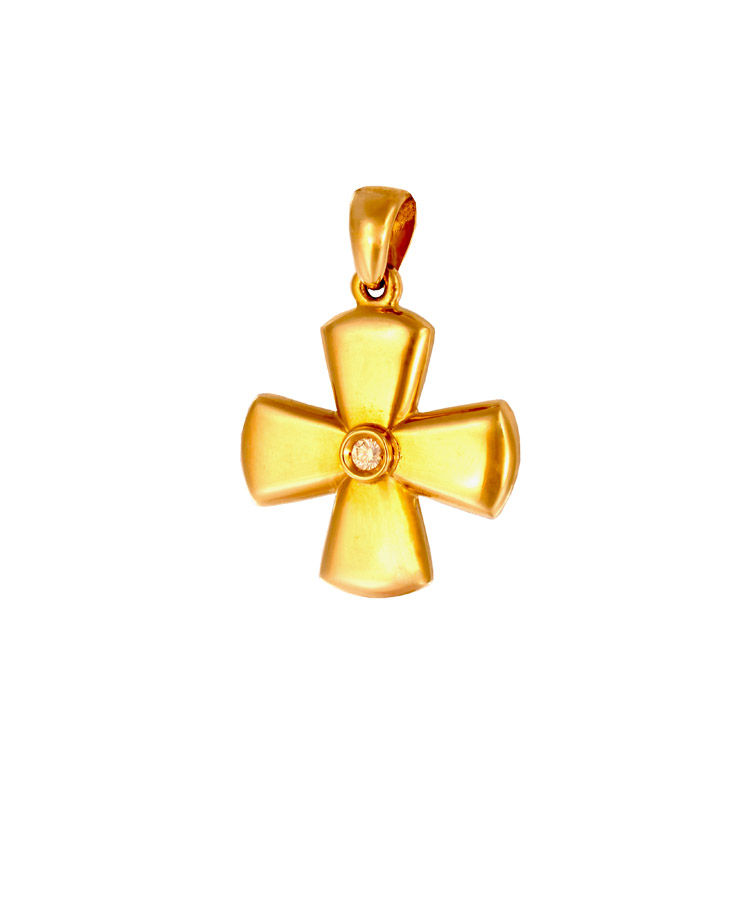 Byzantine type diamond cross in 14K solid Yellow or White gold with one round natural diamond of very good quality in the center, detailed in beautiful high polish finish.