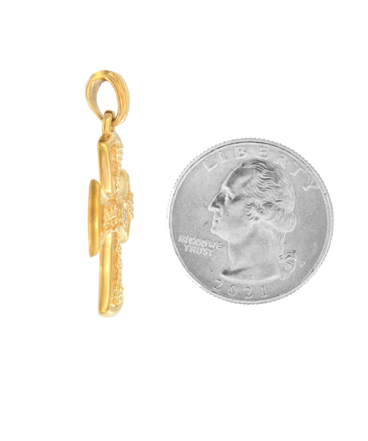 Combining the knowledge, skill and artistry of old, dating back to the 1700s, we make available to you this gold cross pendant which has been made with the ideas and imagination of the 21st century. It is made of pure 14k solid yellow gold, with attention to high polish. A gold cross heirloom destined to last forever.