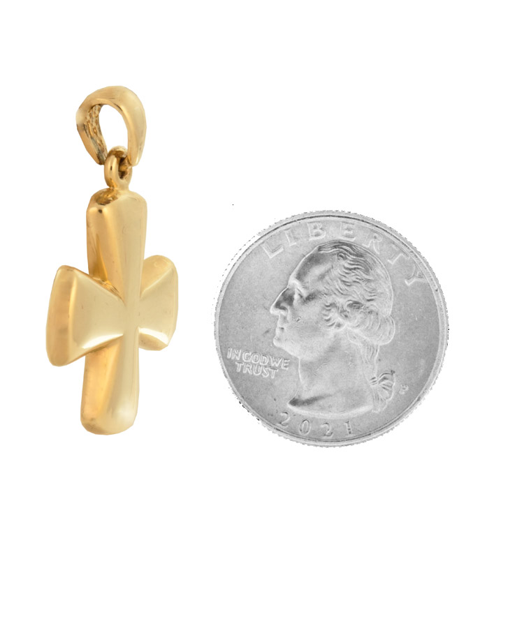 Combining the knowledge, skill and artistry of old, dating back to the 1700s, we make available to you this gold cross pendant which has been made with the ideas and imagination of the 21st century. It is made of pure 14k solid yellow gold, with attention to high polish. A gold cross heirloom destined to last forever.