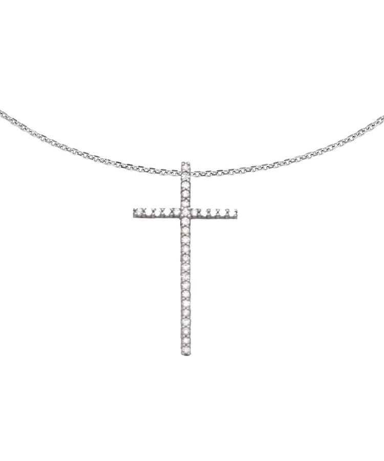 14K solid white gold diamond cross necklace