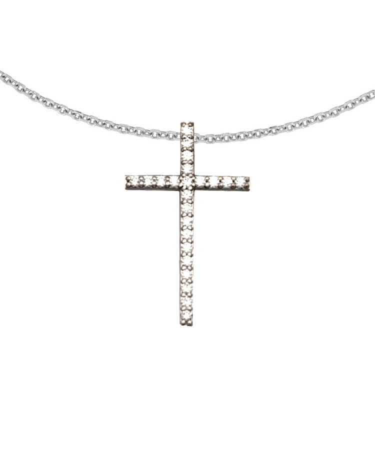 14K solid White gold modern style diamond cross necklace with very good quality prong set natural diamonds all over. High polish finish. Stunning!