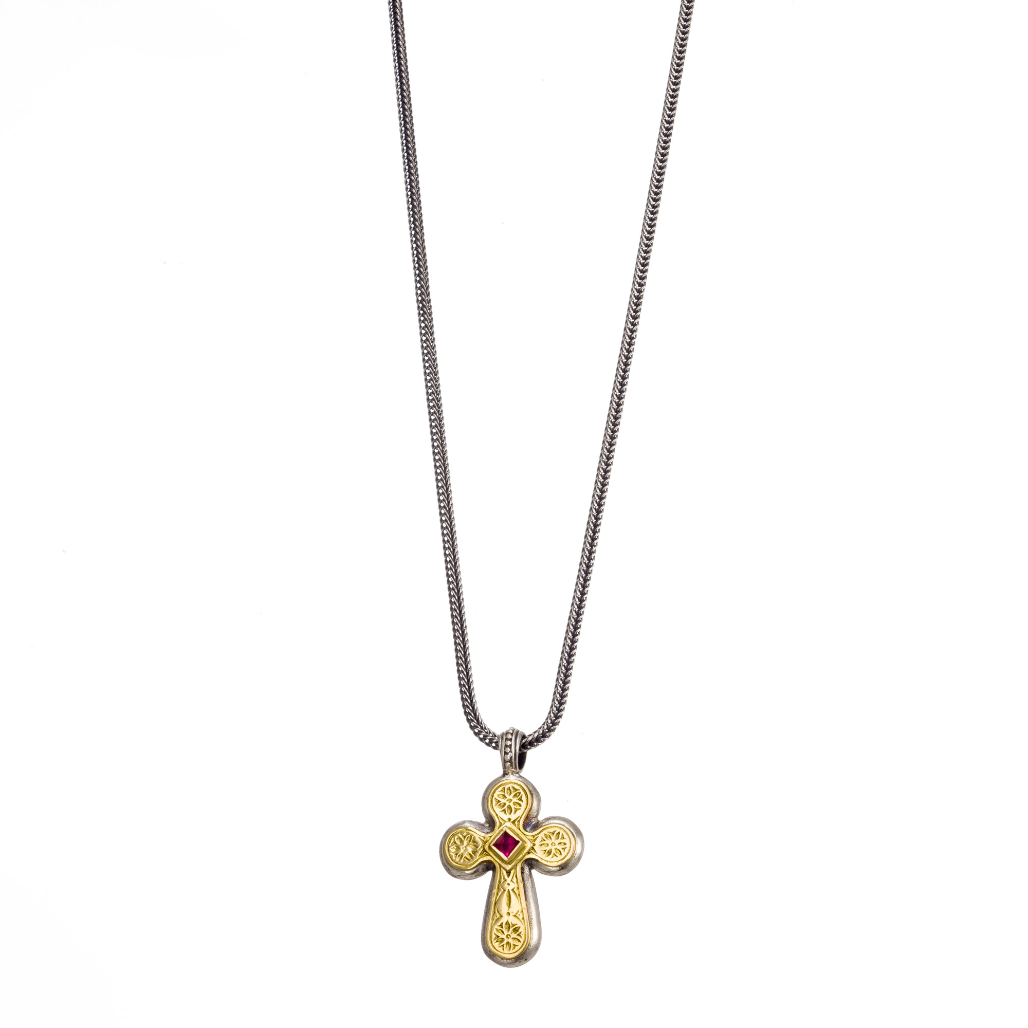 Sterling Silver 925 and 18K gold pomme cross pendant all high polished