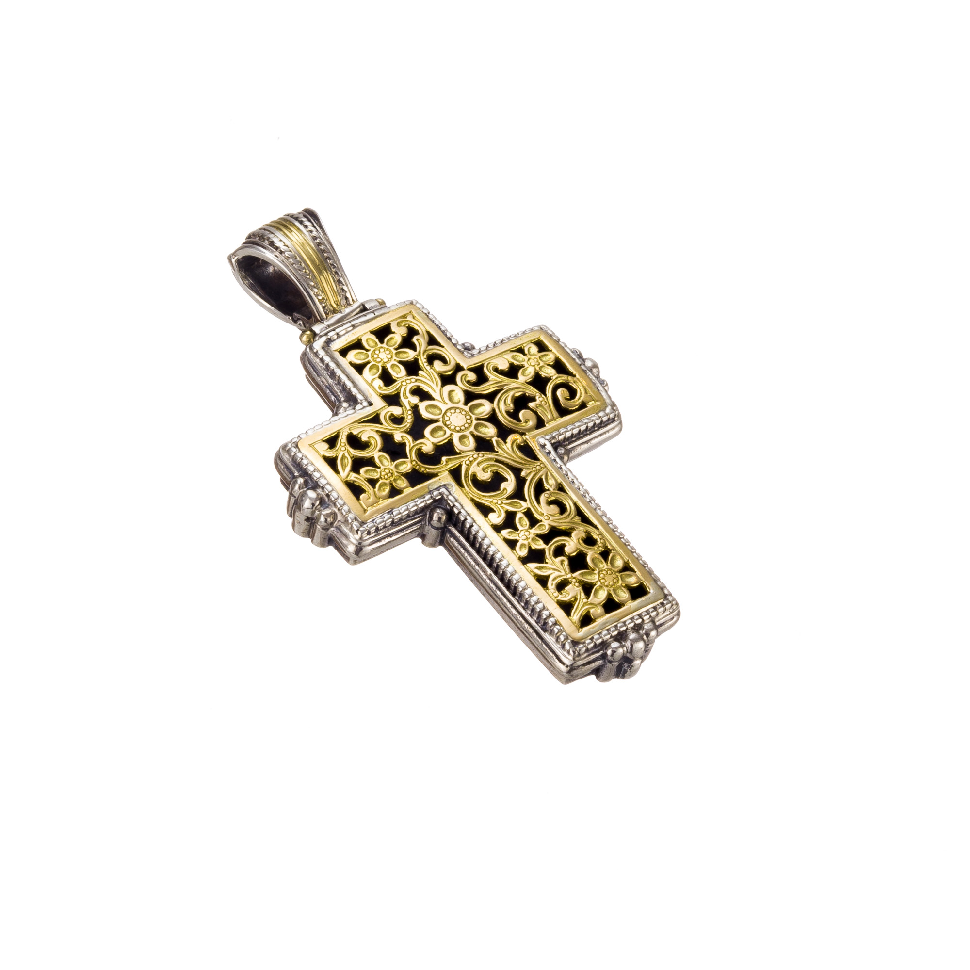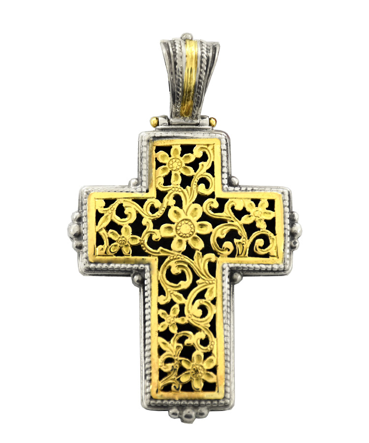 Garden Shadows cross with 18K gold face and in the bail
