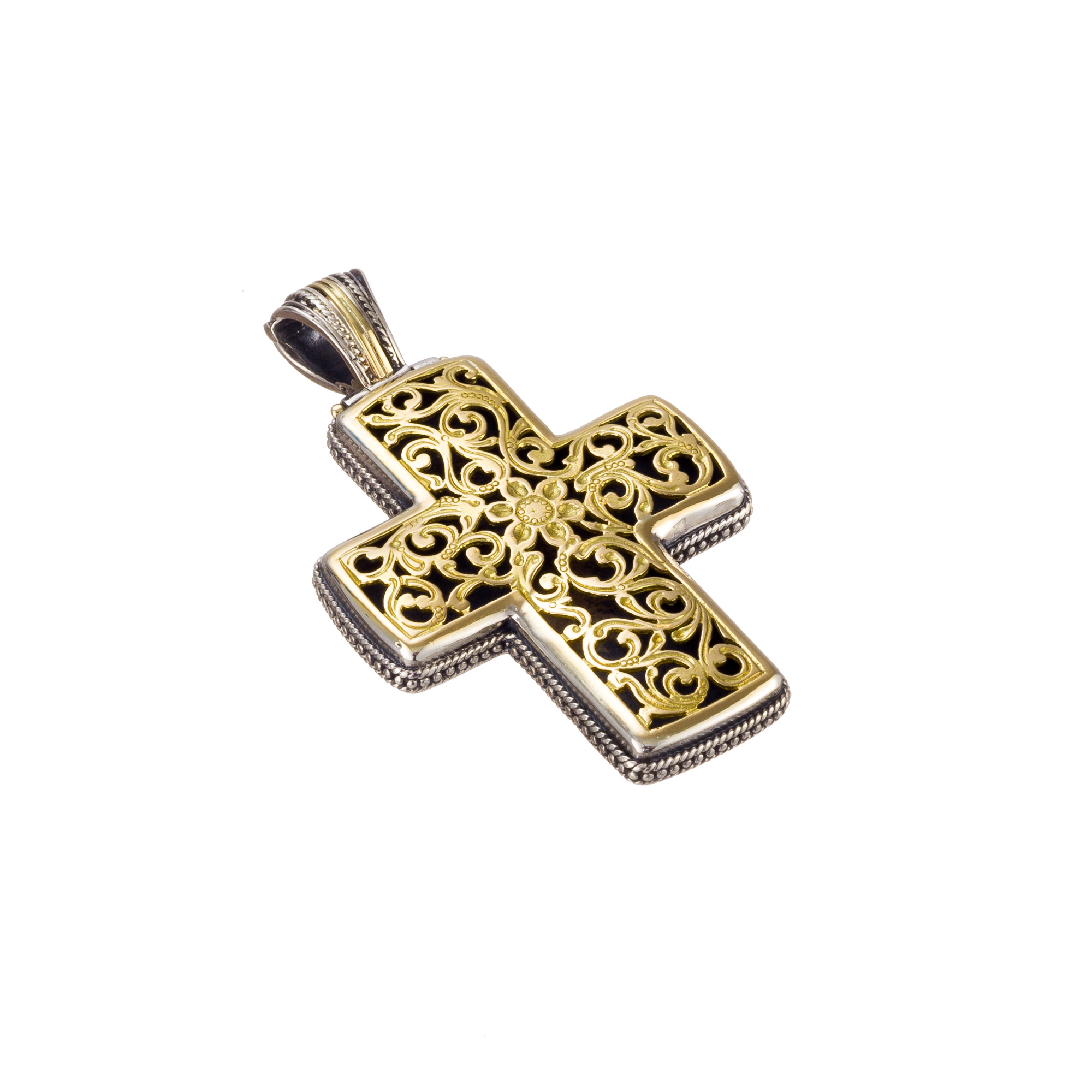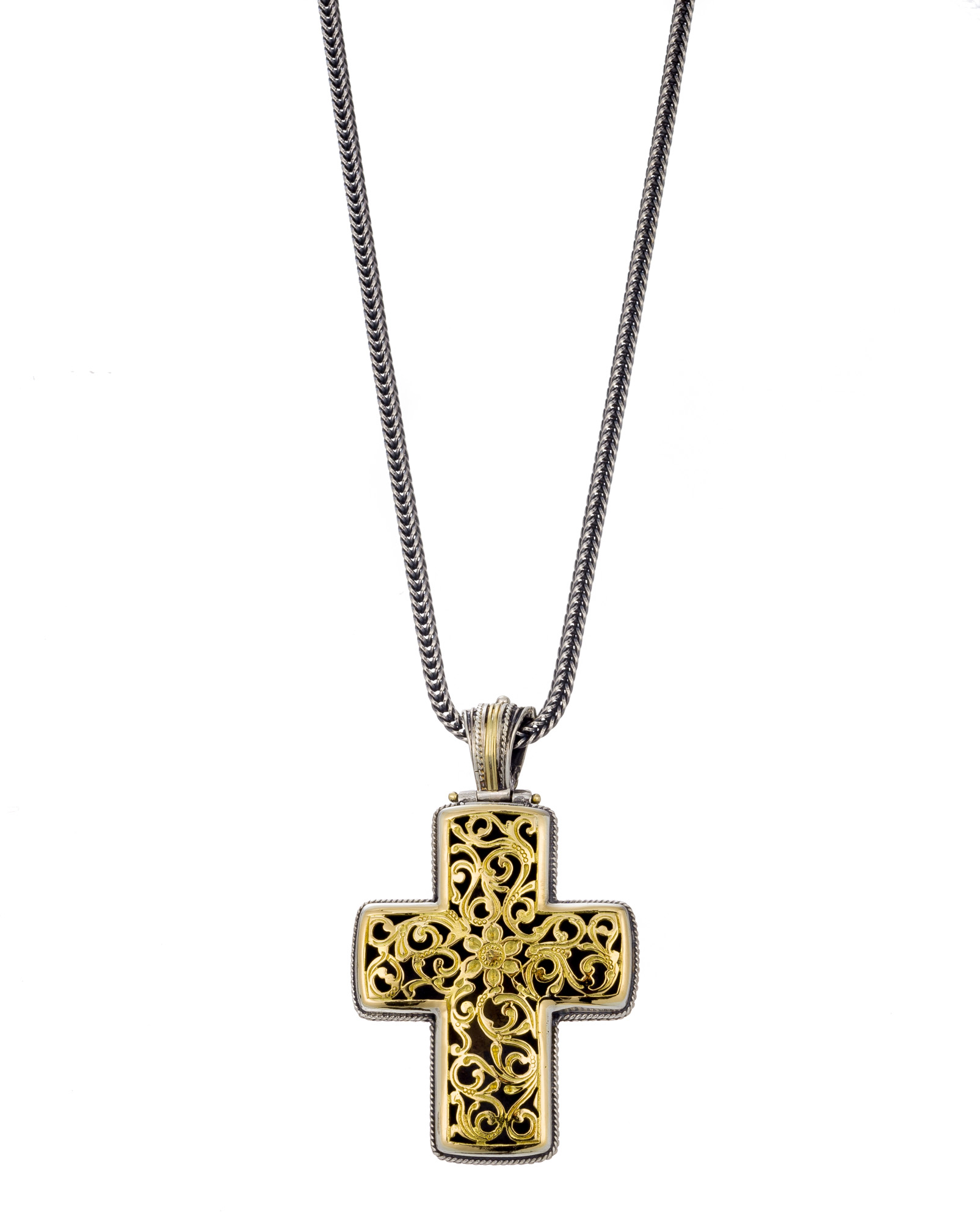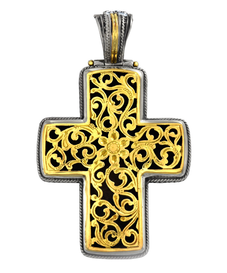 Garden Shadows cross with 18K gold face and in the bail